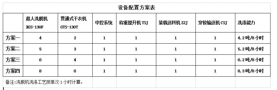 力凈集成式自動化洗滌系統配置方案設備配置方案表